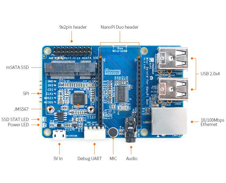 - Имеет 2×9 Pin, который расширяет контакты IO NanoPi Duo.
