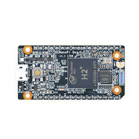 NanoPi Duo — разработан компанией FriendlyElec для производителей, любителей и профессионалов. Он маленький, всего 50 х 25,4 мм. Использует Cortex-A7 H2 + SoC от Allwinner. Имеет 256M или 512M DDR3 RAM и встроенный модуль WiFi. Имеет готовый к использованию образ операционной системы UbuntuCore.