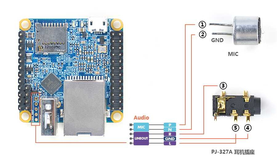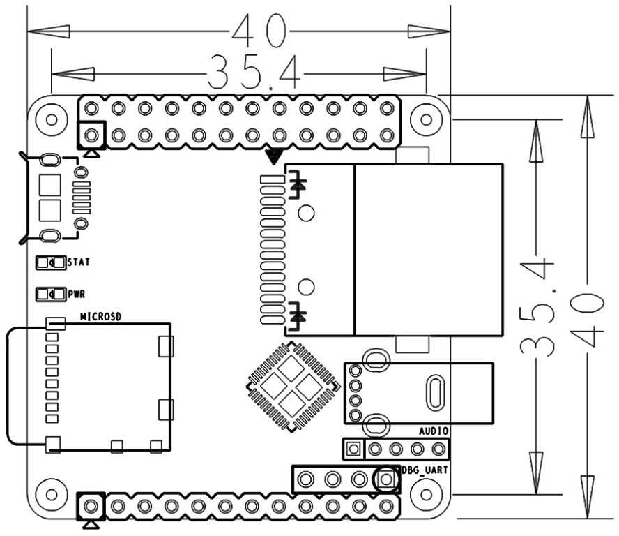 | GPIO | GPIO1: 2,54 мм шаг 24-штырькового разъема, совместимый с выводом GPIO от Raspberry Pi1. Он включает в себя UART, SPI, I2C, IO и т.д. GPIO2: 2,54 мм шаг 12-штырьковый разъем. Он включает в себя USB, ИК-приемник, I2S, IO и т.д. Аудио вход/выход: шаг 2,0 мм 5-контактный разъем |