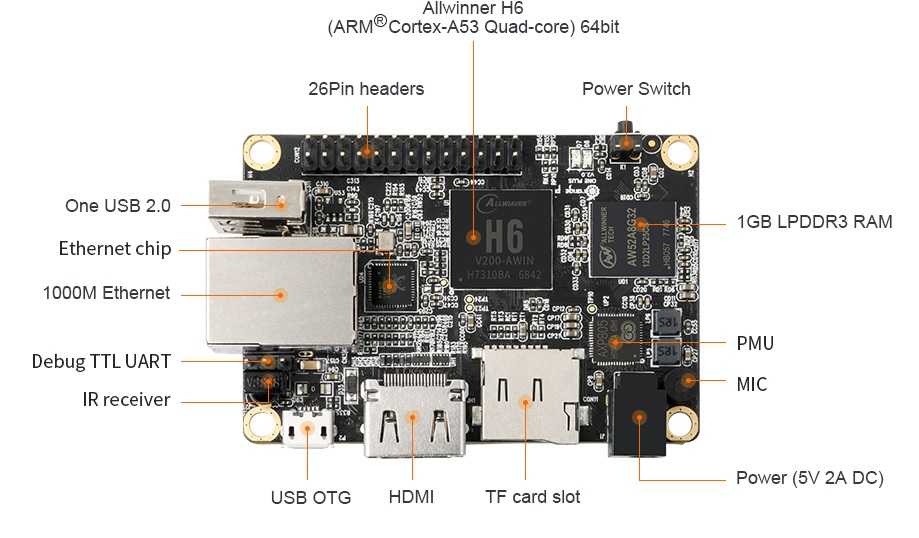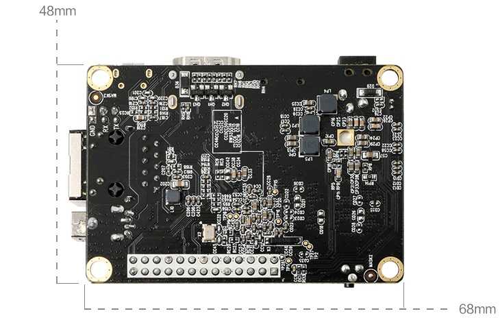 Естественно имеется ИК-приемник и микрофон, контактная площадка UART. Можно подключить монитор или телевизор через HDMI. Цена от производителя на Aliexpress около 19.99$. Изделие имеет размеры всего 48 × 68 мм и весит 45 граммов. Для хранения данных служит сменная карта microSD. Имеет программируемые контакты общего назначения GPIO (26 контактов).
