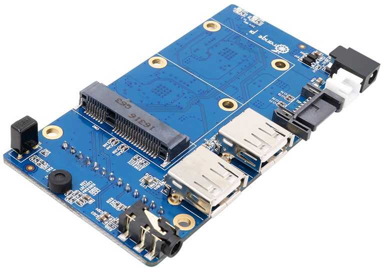 Превращает Апельсинку в NAS. Содержит SATA порт и разъём mSATA, два USB-порта, микрофон, ИК-приёмник и 3,5 мм AV разъем для видео тюльпаны и аудио. Питается плата через дополнительный разъём 4.0 мм/1.7 мм. Приобрести у производителя на Aliexpress.